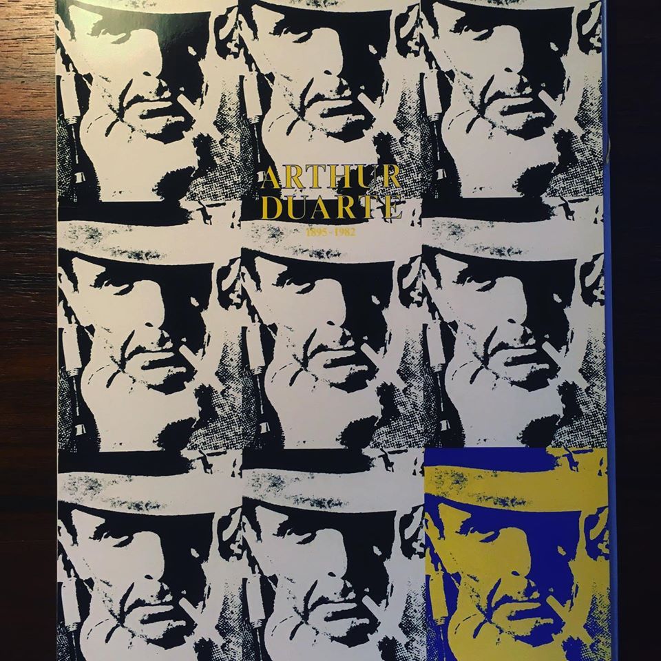 • Cartaz pop art com múltiplas imagens de rosto masculino e texto ARTHUR DUARTE