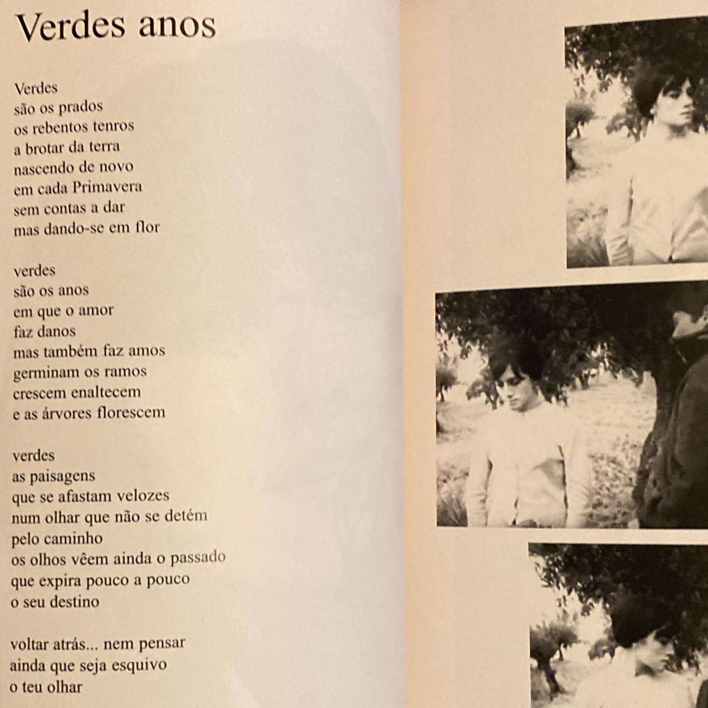 Fala-me amor diz que estás comigo que tens projectos para amanhã que viver é como um rio que corre à minha frente que a minha vida é sempre urgente e que contigo poderei viver eternamente diz-me coisas concretas que a noite é escura que existe o sol a lua cometas que a terra é redonda que a janela está aberta que se vêem os montes que há água nas fontes e a sombra que debaixo das árvores se abriga é nossa amiga