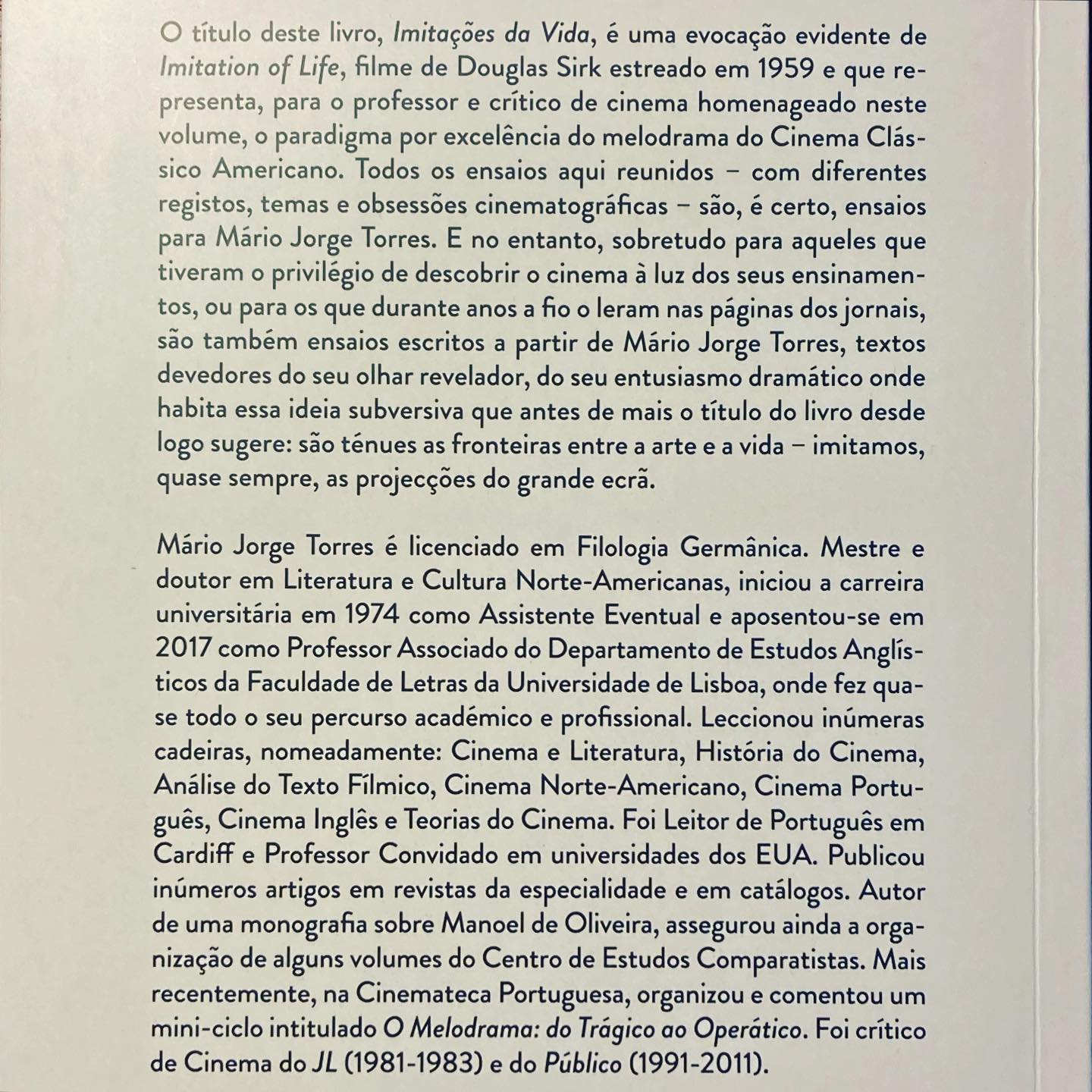 IMITAÇÕES DA VIDA • CINEMA CLÁSSICO AMERICANO - ENSAIOS PARA MÁRIO JORGE TORRES • Organização de José Bértolo, Fernando Guerreiro & Clara Rowland • 2020 Bookbuilders 600 pgs • Ensaios de Abílio Hernandez Cardoso, Amândio Reis, Ana Bela Morais, Ana Isabel Soares, Artur Hermenegildo, Clara Rowland, Daniel Ribas, Elsa Mendes, Fátima Chinita, Fernando Guerreiro l, Jeffrey Childs, João de Mancelos, José Bértolo, Leonor Areal, Luís Mendonça, Luís Miguel Oliveira, Mário Jorge Torres, Manuel S. Fonseca, Maria João Madeira, Paulo Cunha, Pedro Costa, Raquel Morais, Ricardo Vieira Lisboa, Sérgio Bordalo e Sá, Sérgio Dias Branco & Etc • Revisão de Suzana Ramos • Livro disponível na Linha de Sombra • www.linhadesombra.com • Cinemateca Portuguesa-Museu do Cinema ◼︎