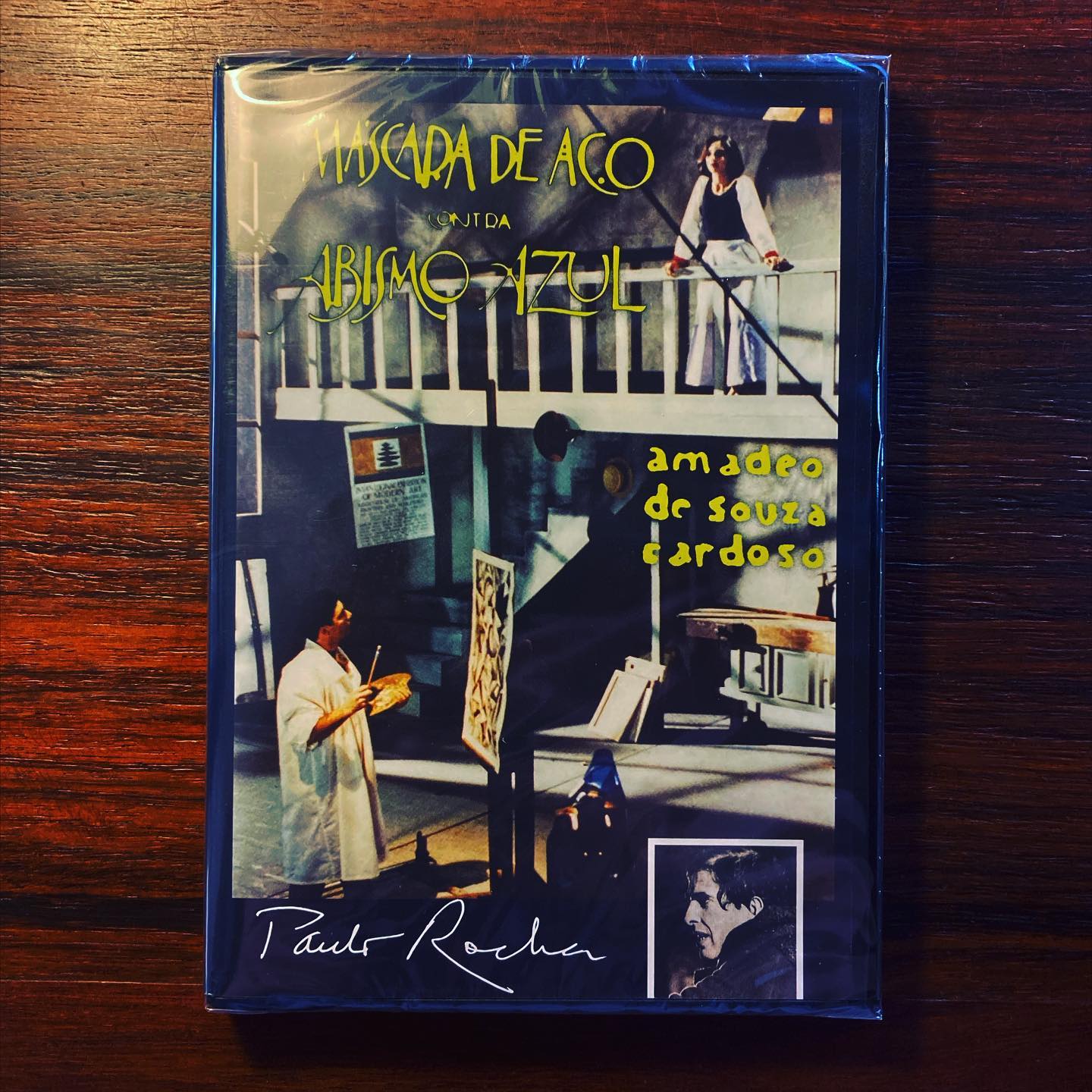 MÁSCARA DE AÇO CONTRA ABISMO AZUL • Paulo Rocha • 2017 [1988] Cinemateca Portuguesa & Midas Filmes 60 min • Com Vítor Norte, Fernando Heitor, Inês de Medeiros, Miguel Guilherme, José Viana, Henrique Viana • Argumento Paulo Rocha • Assistente de realização Luís Alvarães • Fotografia Daniel Del Negro • Cenografia Luís Monteiro • Música Paulo Brandão • Músicos Jacinto Santos, Jorge Trindade, Paula Carvalho, Rui Trindade • Montagem Manuel Mozos • Assistente de montagem Vítor Moreira • Som Vasco Pimentel, João Gaspar • Colaboração especial António Escudeiro, Artur Moura, Luiza Neto Jorge, Manuel João Gomes • Produção Suma Filmes para a Secretaria de Estado da Cultura e Radiotelevisão Portuguesa • Directores de produção João Pedro Bénard • Assistentes de produção Angela Cerveira, Paulo Sousa Rocha • Em Máscara de Aço contra Abismo Azul, Paulo Rocha faz uma surpreendente "colagem" sobre o modernismo português, centrado em Amadeo de Souza-Cardoso. Entre a reconstituição dos anos do Orpheu e do Manifesto Futurista, a montagem de uma exposição na Gulbenkian e um onirismo jugulado, Paulo Rocha propôs uma das mais singulares e fascinantes visões desse mundo de cores e metais, tão saudosista quanto anarquizante, tão altaneiro quanto inseguro • PVP 12€ • Linha de Sombra • www.linhadesombra.com • Cinemateca Portuguesa ■