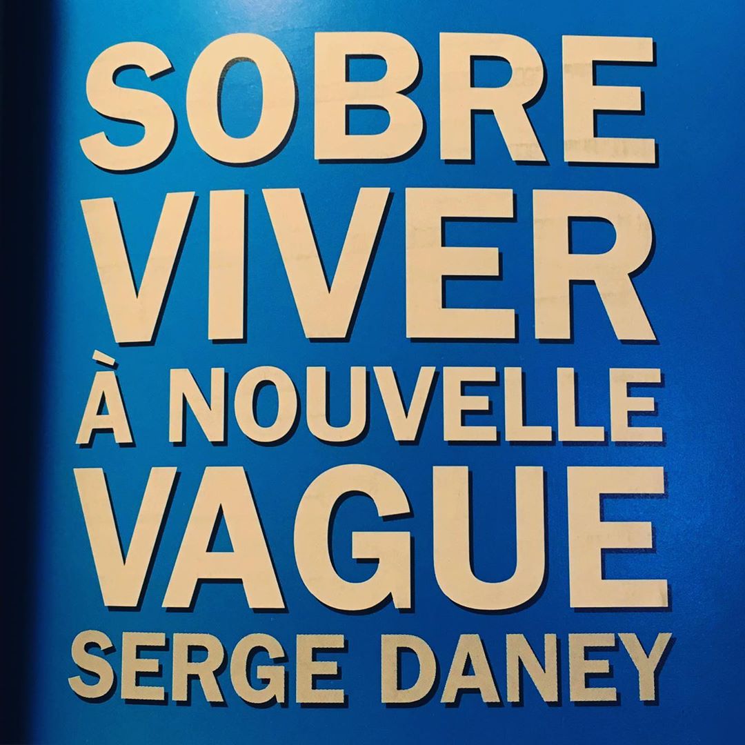 • Capa de livro azul com texto amarelo sobre viver à nouvelle vague de Serge Daney