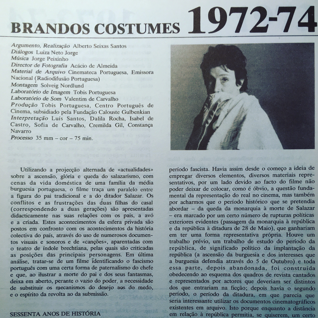 • Capa de revista BRANDOS COSTUMES 1972-74 com foto a preto e branco e texto em português.