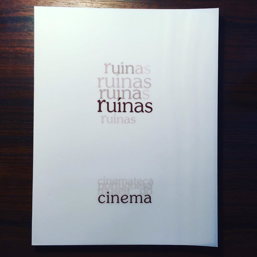 RUÍNAS • Organização por Dominique Païni • 2001 Cinemateca Portuguesa 122 pgs 91 fotos• Ciclo e Catálogo organizado por Dominique Païni • Textos de João Bénard da Costa; Dominique Païni; Claudine Kauffmann; Alain Fleischer; François Nemer & Raymond Bellour • Concepção gráfica de Rita Azevedo Gomes  • Livro disponível na Livraria Linha de Sombra • Cinemateca Portuguesa-Museu do Cinema ◼︎